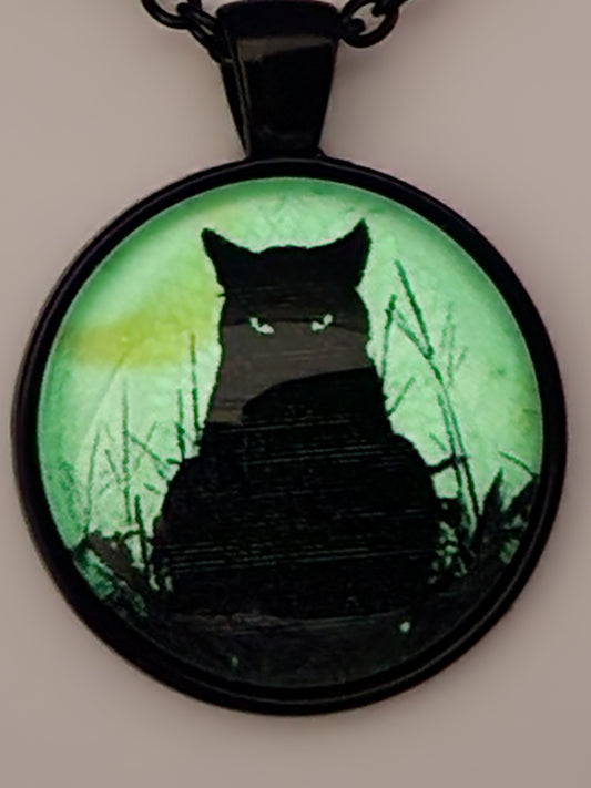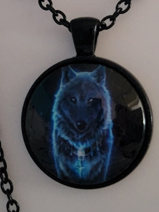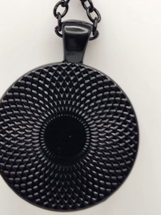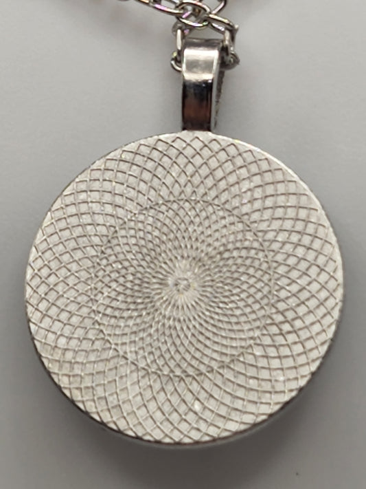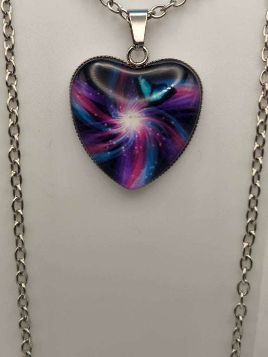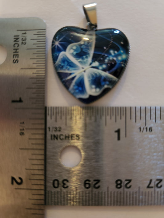 Blue and Mauve Swirl Butterfly Pattern with Heart Shape Glass 1" Necklace