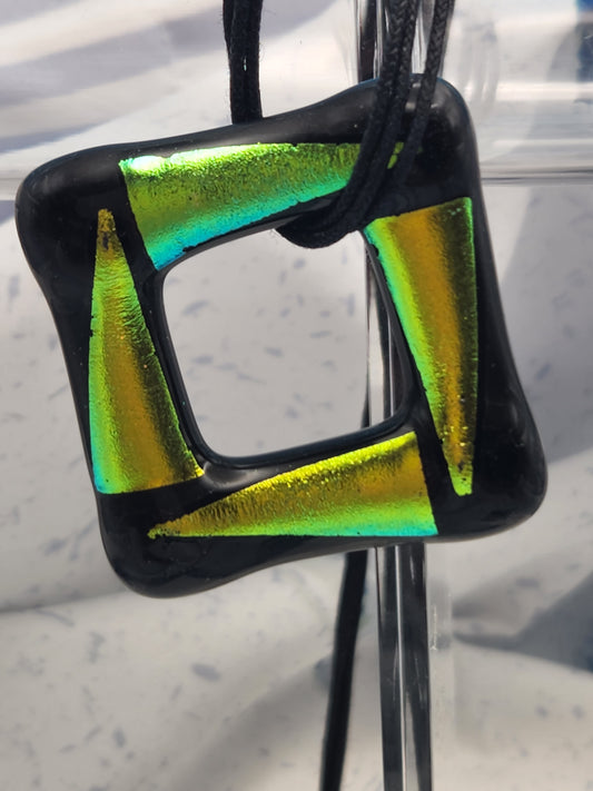 Dichroic Glass Square Necklace with Triple Strand Necklace